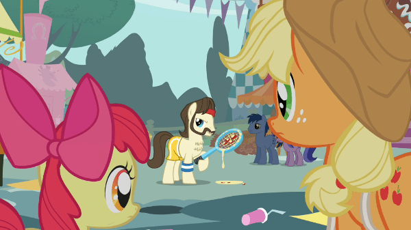 First off, Applejack (correctly) advises her that she can’t force these things, that she’ll just have to wait, that every pony gets a cutie mark but only when the time is right. A disastrous (but pretty funny) stint trying to sell apples on Applejack’s market stall only underlines the point, but it still cuts no ice.