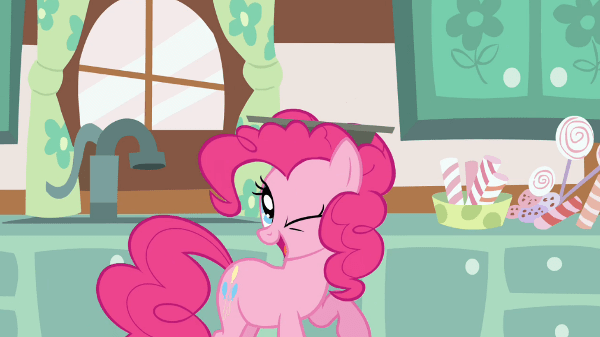 She also violates the laws of physics, not only appearing impossibly out of the edges of the frame (a Pinkie Pie hallmark by now), but also actually appearing on screen multiple times in the same shot: