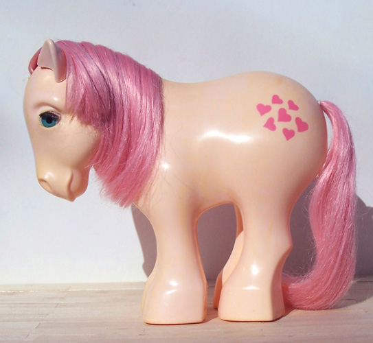 The concept of cutie marks was one of those genuine, literal “sit up and take notice” TV moments for me; Bonnie Zacherle’s brilliant original design had incorporated symbols on the flanks of her toy ponies, almost right from the start, dating back to the days of My Pretty Pony: