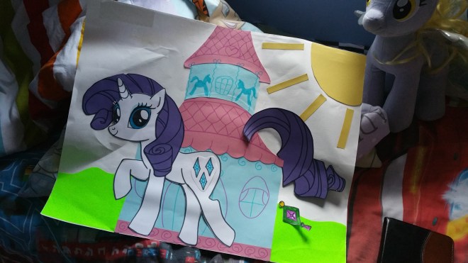 My daughter loves Rarity above all other ponies, and so my sister (the artistically talented one in the family!) decided to be the cool aunt and made this awesome game for her niece – I don’t know if you can see, but Rarity’s tail, cutie mark and earring are all stick-ons, and there were some more accessories (and an Opal!) but sadly I failed to take a picture before the crowd of 3-year-olds got to those…!