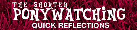 Ponywatching is the reflections of a grown man, proud dad and newly-minted brony on each episode of My Little Pony: Friendship Is Magic. The full-length episode reflections (which are kind of a mix of recaps, reviews and analysis) are the reason I started writing the site in the first place, but not everyone has the time, patience or inclination to wade through ten thousand words of some guy’s thoughts on My Little Pony, and that’s where The Shorter Ponywatching was born.